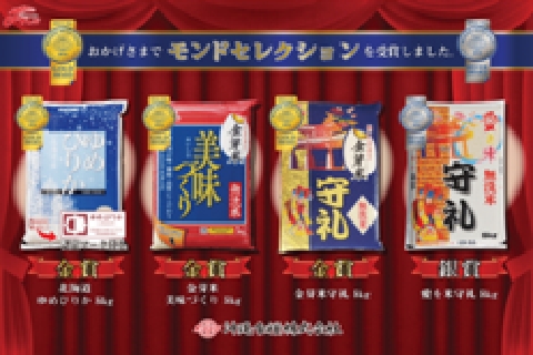 ![]() モンドセレクション2016に「ゆめぴりか」「金芽米美味づくり」 「金芽米守礼」が金賞「愛を米守礼」が銀賞に選ばれる。 |