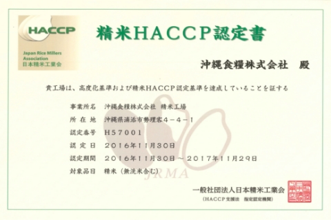 ![]() 食品衛生管理の国際基準「精米HACCP」国内初取得 |